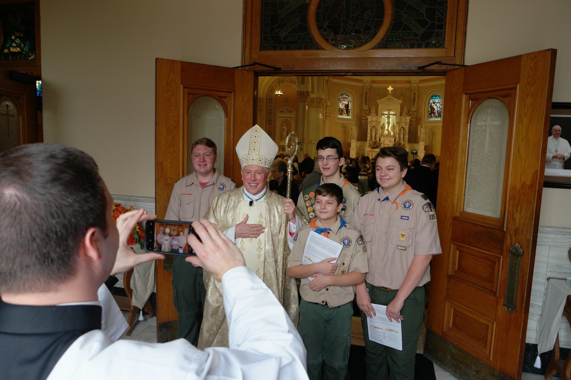 Through the merit badge system, Scouts work toward achieving the rank of Eagle Scout while growing in leadership, faith, and service. Members participate in parish and community service projects, as well as outdoor adventures supported by dues, fees, and fundraisers.